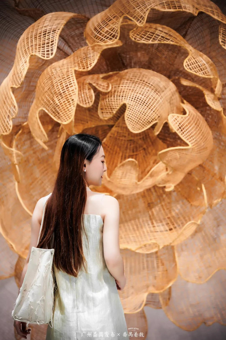 青年艺术家的“非遗竹艺”作品,让人想起沙湾传统竹编——那些精巧的竹编牡丹,恰似在向番禺悠久的园林文化轻轻致意。