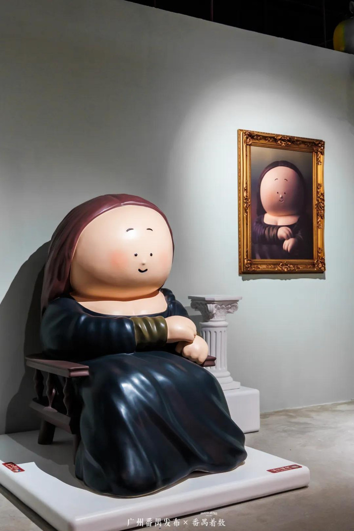 在艺术家“大橘子”的二次创作下,《弗里达的花园》《蒙娜丽莎与达·芬奇》《戴珍珠耳环的少女》《达利与时光》等世界名画都以憨态可掬的“萌化”形象出现。